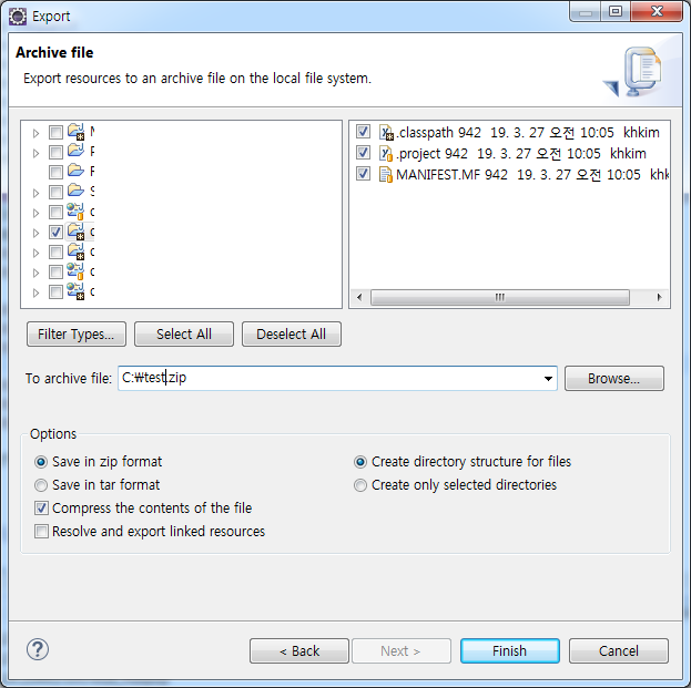1. 이클립스에서 프로젝트를 archive파일로 export